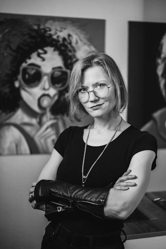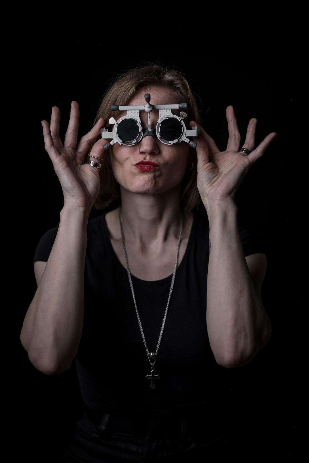 Luisa Martin, Augenoptikermeisterin, ernst vor neutralem Hintergrund