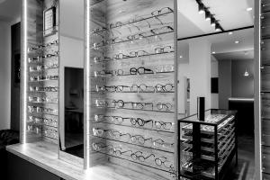 Modern eingerichtetes Optikstudio mit stilvoller Brillenpräsentation und Wohlfühlambiente